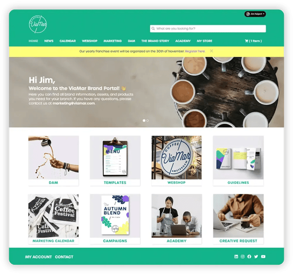 - Franchise marketing platform: Platforms like Marvia combine DAM, customizable templates, materials webshop, and brand compliance in one integrated solution. Ideal for complex franchise rebranding projects.